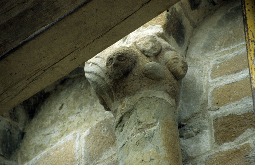 Detalle de un capitel de la Iglesia de San Miguel de Orna de Gállego (Huesca)