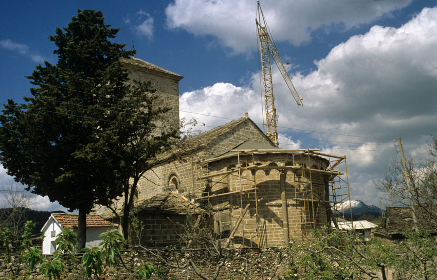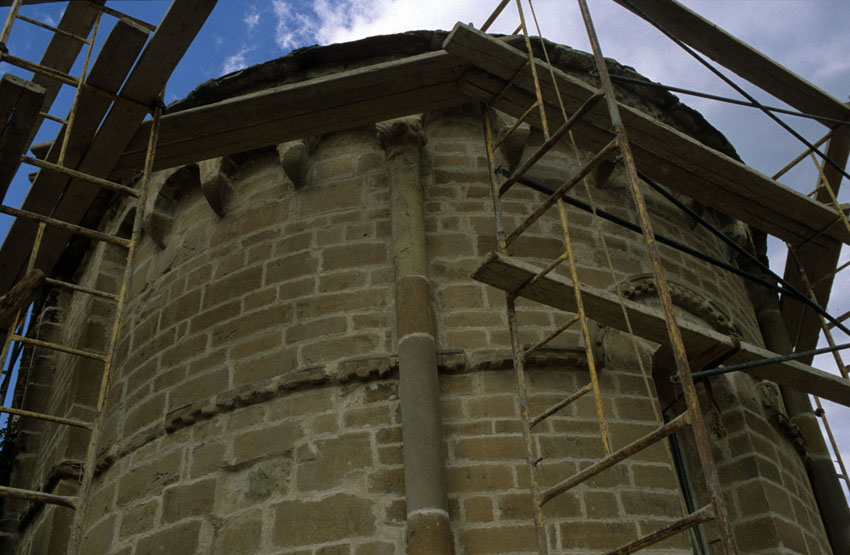 Detalle del ábside de la Iglesia de San Juan Bautista de Busa (Huesca)