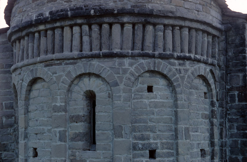 Detalle del ábside de la Iglesia de San Juan Bautista de Busa (Huesca)