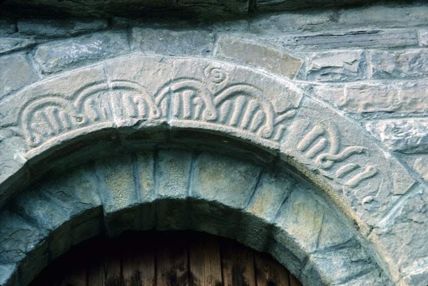 Detalle de la portada de la Iglesia de San Juan Bautista de Busa (Huesca)