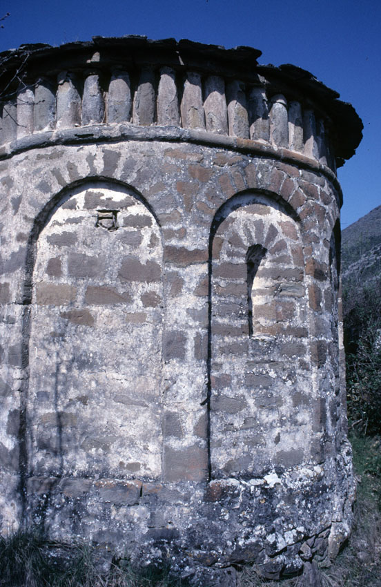 Detalle del ábside de la Iglesia de San Juan de Orús (Huesca)