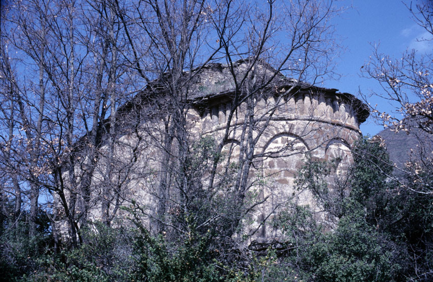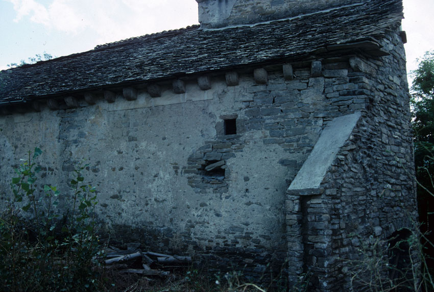 Detalle del ábside de la Ermita de San Juan Bautista de Omiste, en Rasal (Huesca)