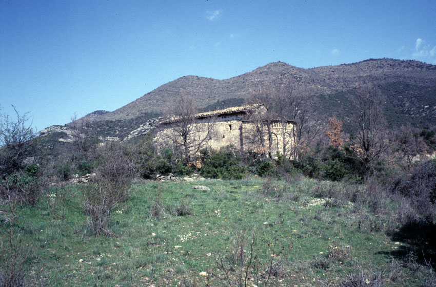 Vista de la Ermita de San Juan Bautista de Omiste, en Rasal (Huesca)