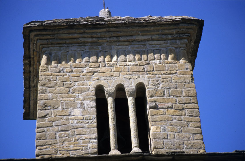Detalle del campanario de la Iglesia de San Pedro de Lasieso (Huesca)