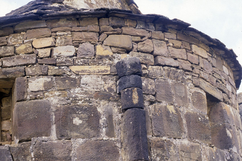 Detalle del ábside de la Iglesia parroquial de San Lorién, en San Lorién (Huesca)
