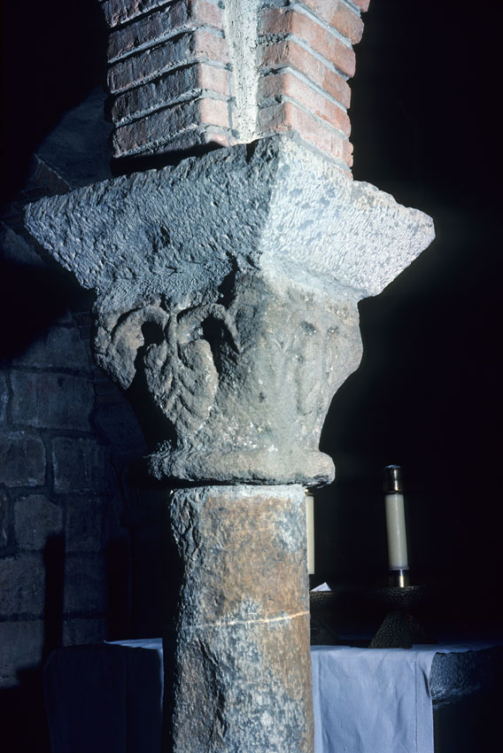 Detalle de un capitel de la Iglesia de Santa María de Aínsa (Huesca)