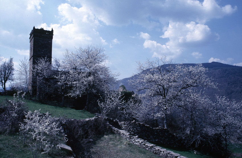 Campanario de la Iglesia de San Miguel de Linás de Broto, en Torla (Huesca)