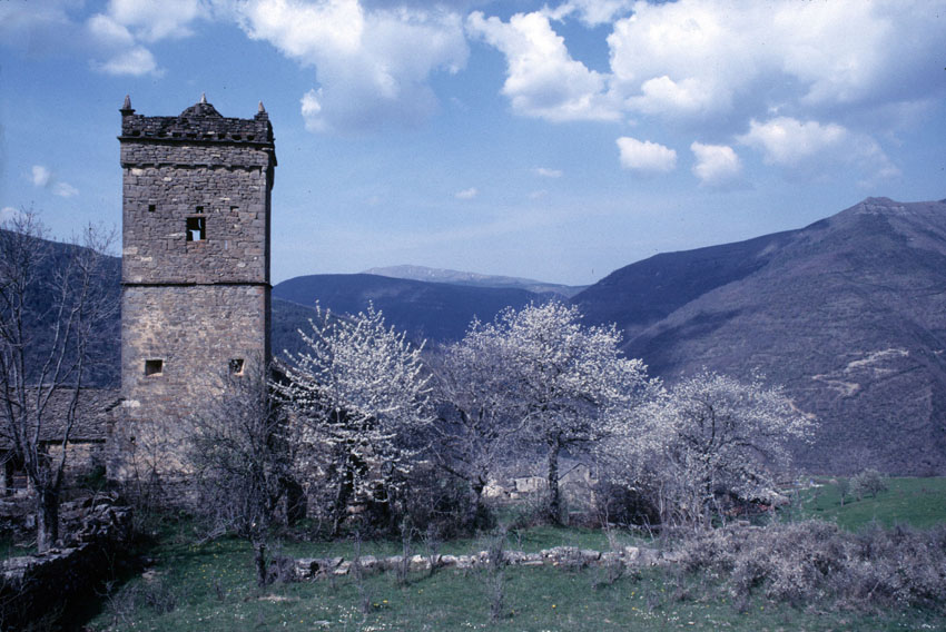 Campanario de la Iglesia de San Saturnino de Oto, en Broto (Huesca)