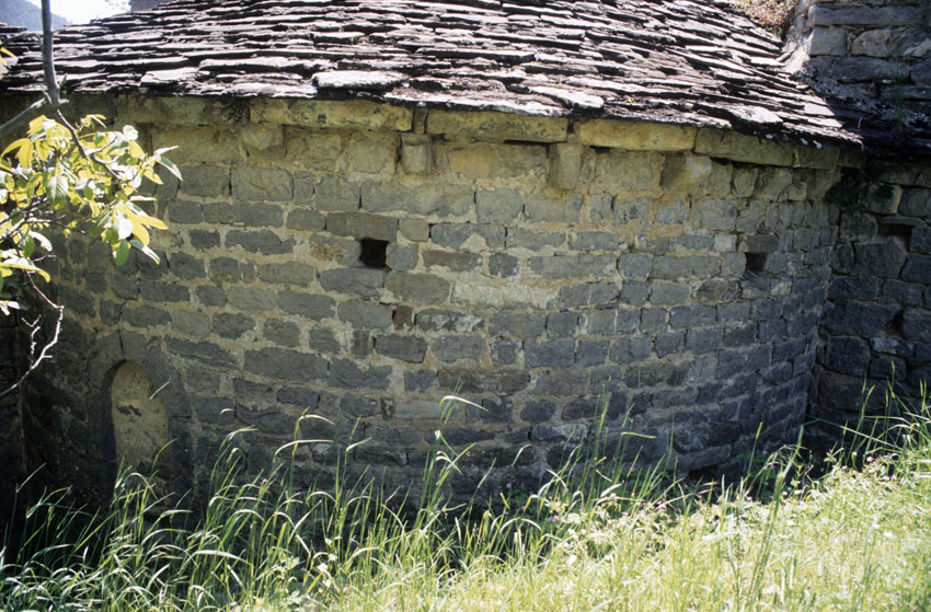 Detalle de una fachada de la Iglesia de Nuestra Señora de la Ascensión de Asín de Broto (Huesca)