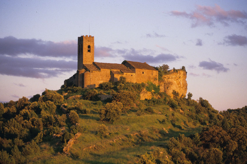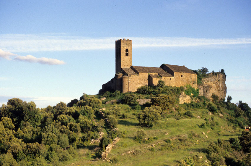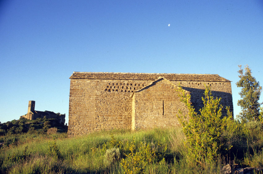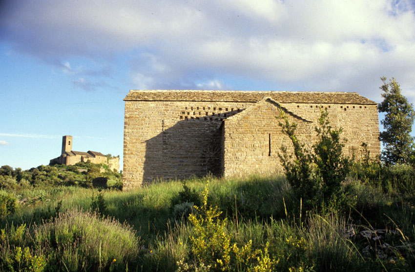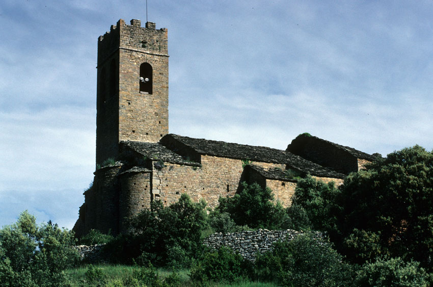 Vista lejana de la Iglesia de Santa María de Muro de Roda (Huesca)