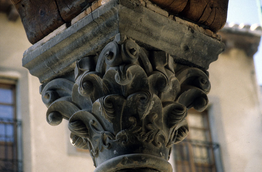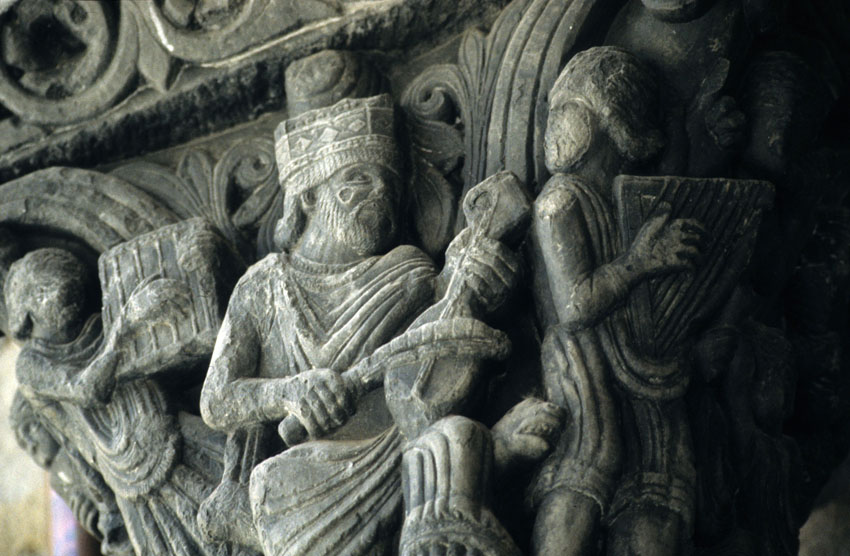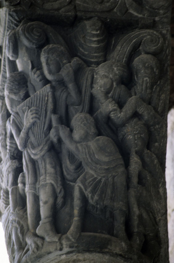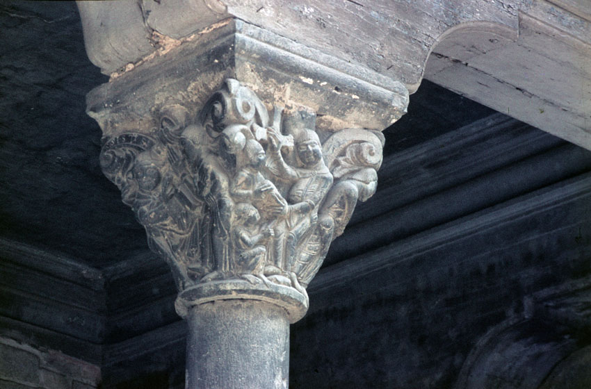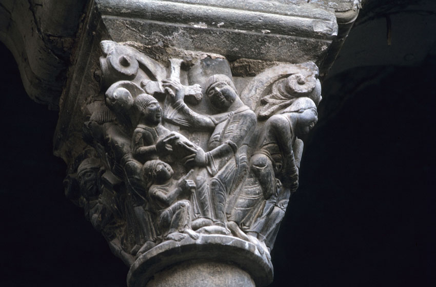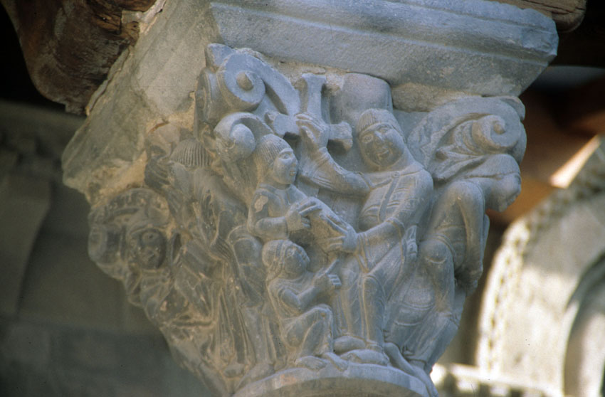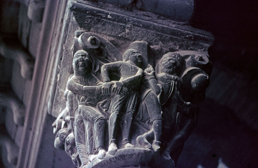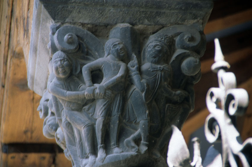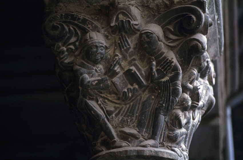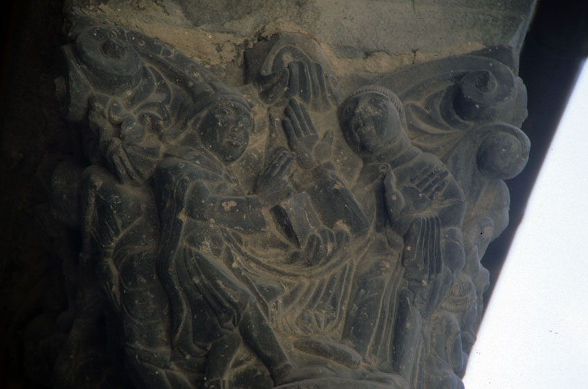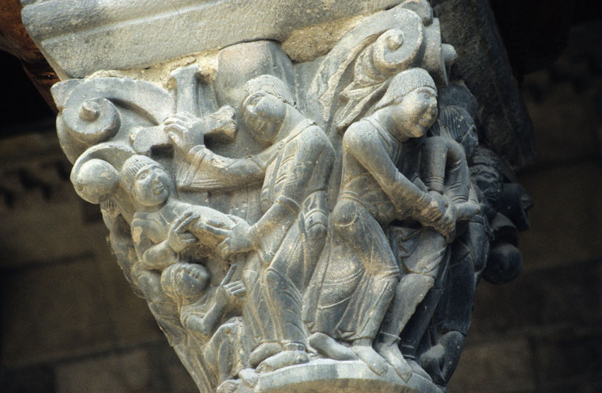 Detalle de un capitel de la Portada Sur de la Catedral de Jaca (Huesca)