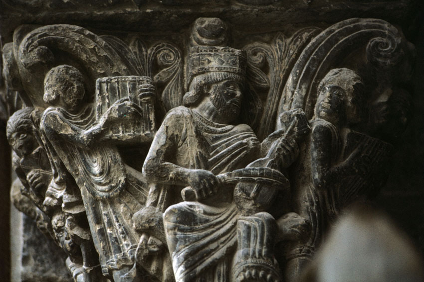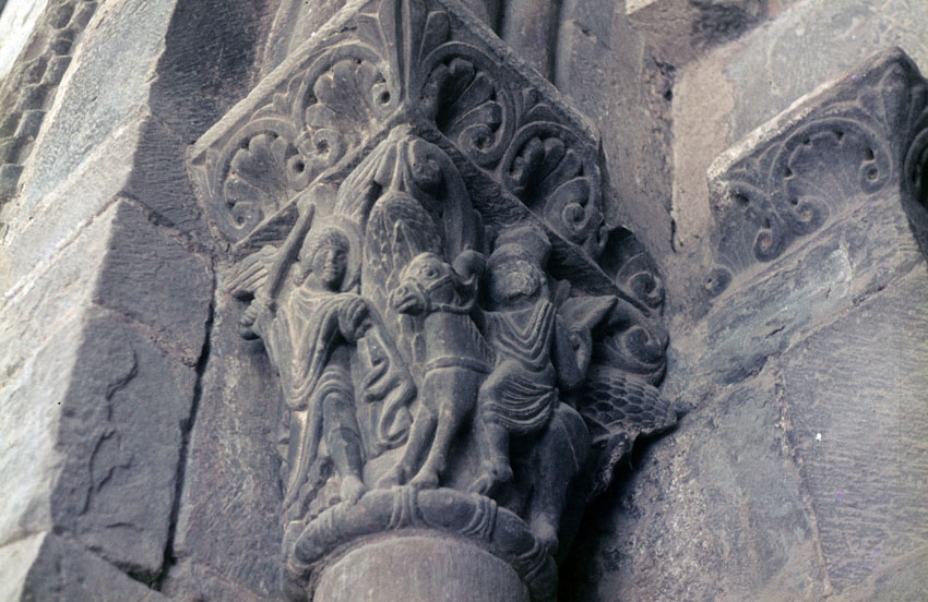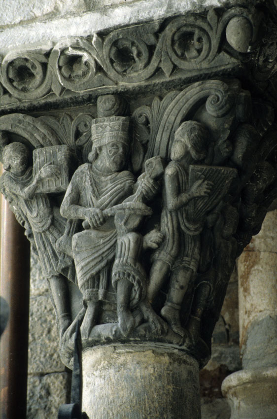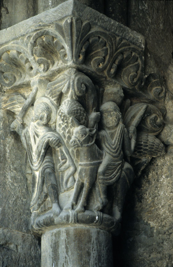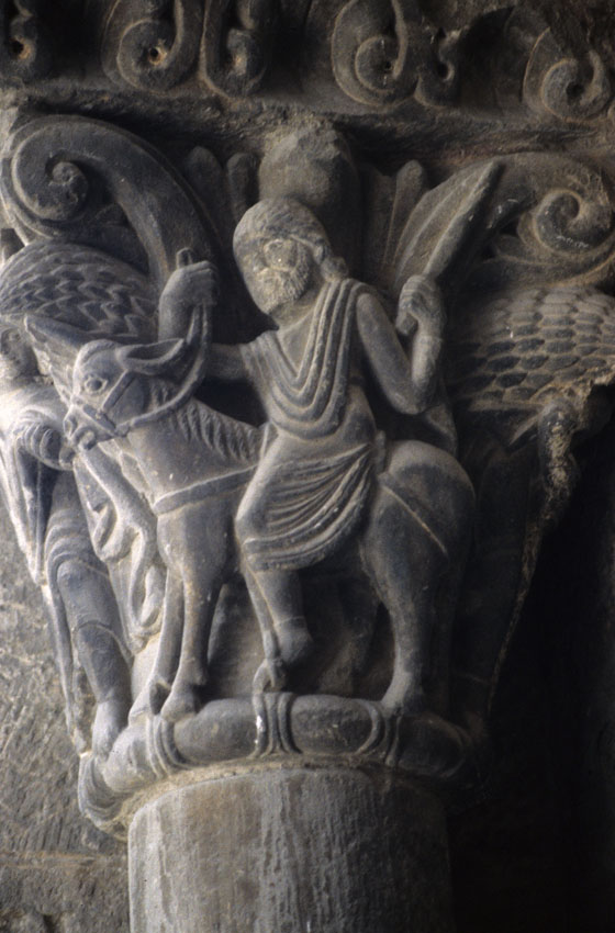 Detalle de un capitel de la Portada Sur de la Catedral de Jaca (Huesca)