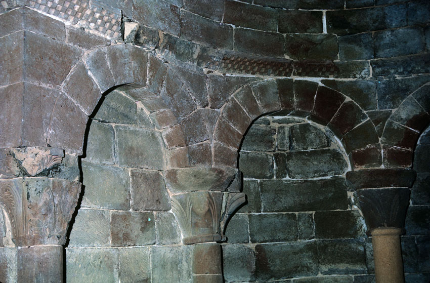 Detalle de arcos de la Iglesia superior del Monasterio viejo de San Juan de la Peña (Huesca)