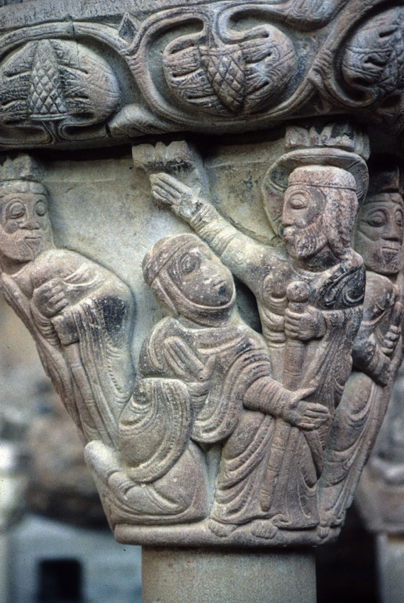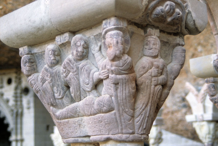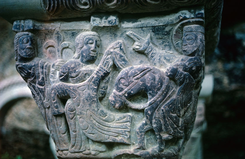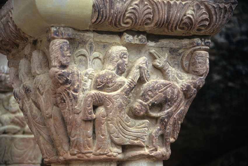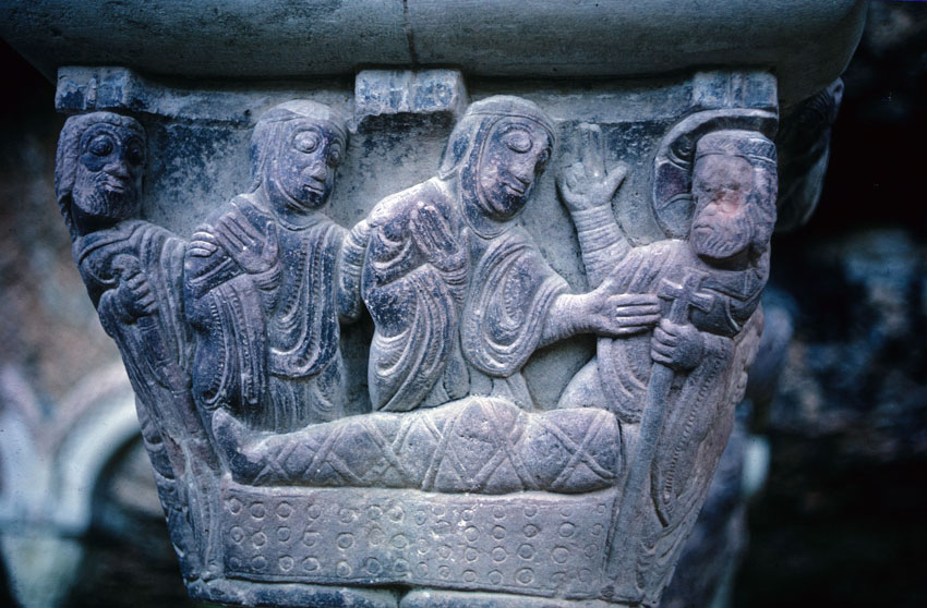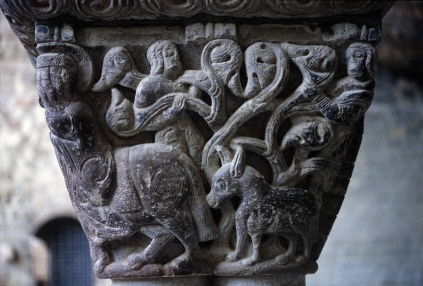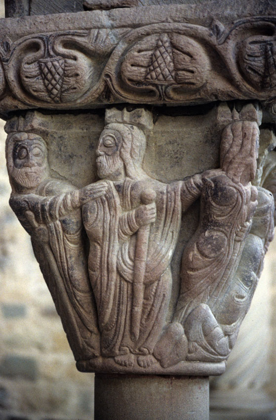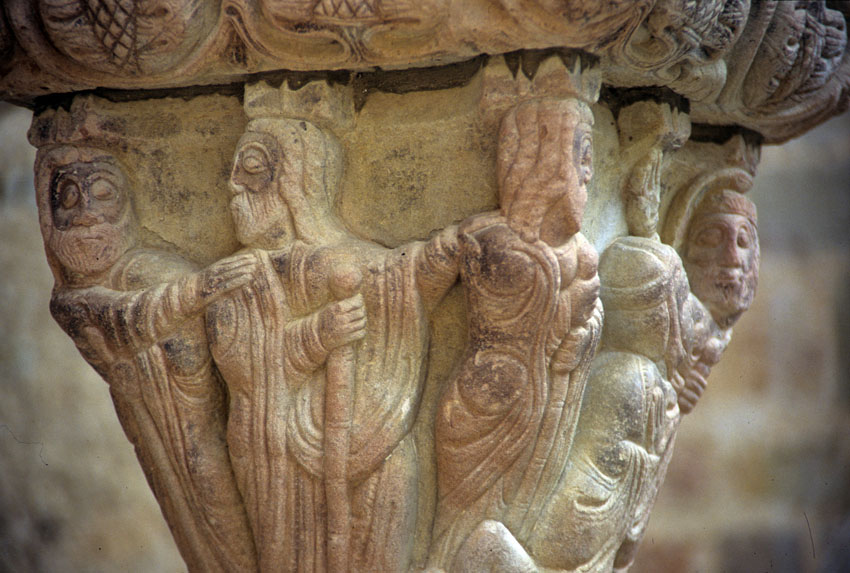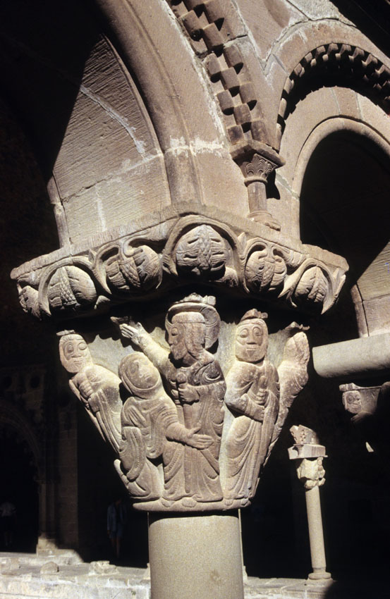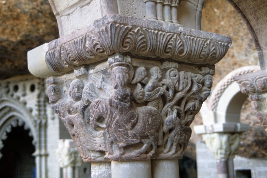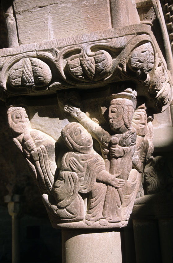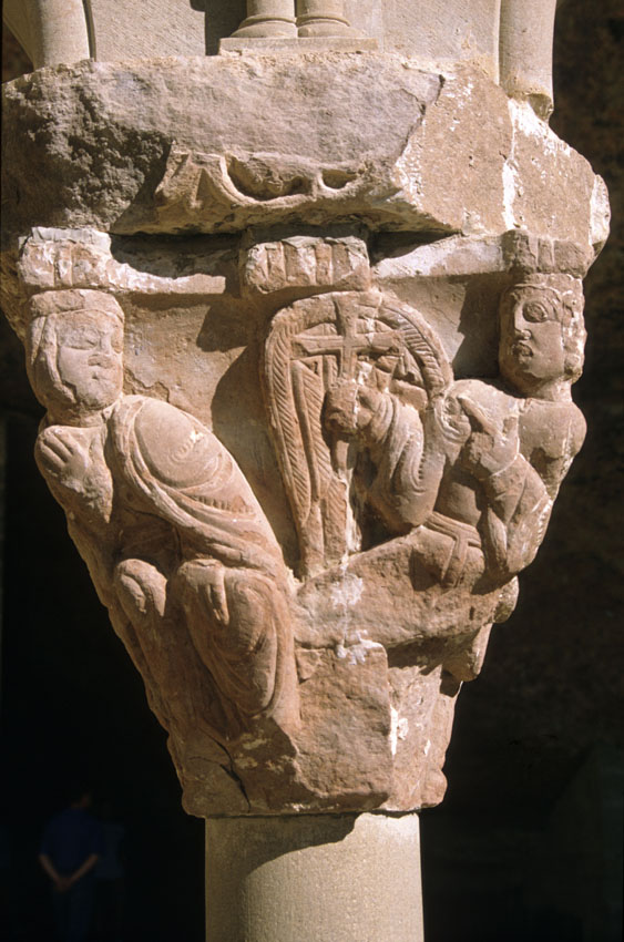 Detalle de un capitel del Monasterio viejo de San Juan de la Peña (Huesca)