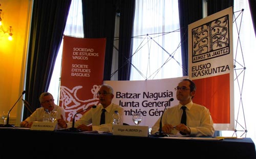 En su informe, el Presidente se detuvo en la marcha de dos proyectos: Auñamendi Eusko Entziklopedia y Elkarbizitza/Convivencia. En el turno de ruegos y preguntas se interpeló a la mesa sobre aspectos económicos, de participación de la masa social y de comunicación de las actividades.