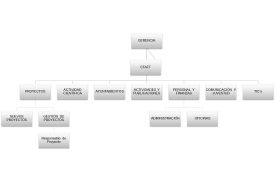 Desde la perspectiva estructural, la nueva organización cuenta con siete áreas: Proyectos, Actividad Científica, Ayuntamientos, Actividades y Publicaciones, Personal y Finanzas, Comunicación y Juventud,? y TIC?s.