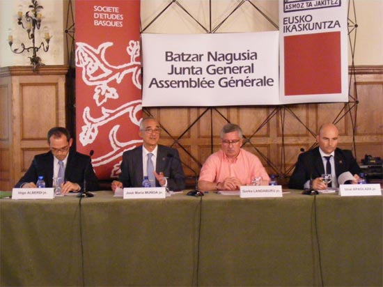 Eusko Ikaskuntzaren urteko Batzar Nagusia ekainaren 8an, ostirala, arratsaldeko 18:00etan egingo da Donostiako Miramar Jauregian. Bertan onartuko dira, hala badagokie, aurreko ohiko batzarraren akta, 2011ko jarduera txostena eta ekitaldi horretako balantzea eta emaitzen kontua. Orobat, aurreikusitako emaitzen banaketa aurkeztuko zaie bazkideei, berek onar dezaten, hala badagokio. Ondoren Batzorde Iraunkorreko bi kideren hautaketari ekingo zaio eta Jose Maria Muñoa, erakundeko Lehendakariak bere urteko txostena jakitera emango du. Azkenik, galde-eskarien aldian bazkideek hitza hartzeko aukera izango dute.