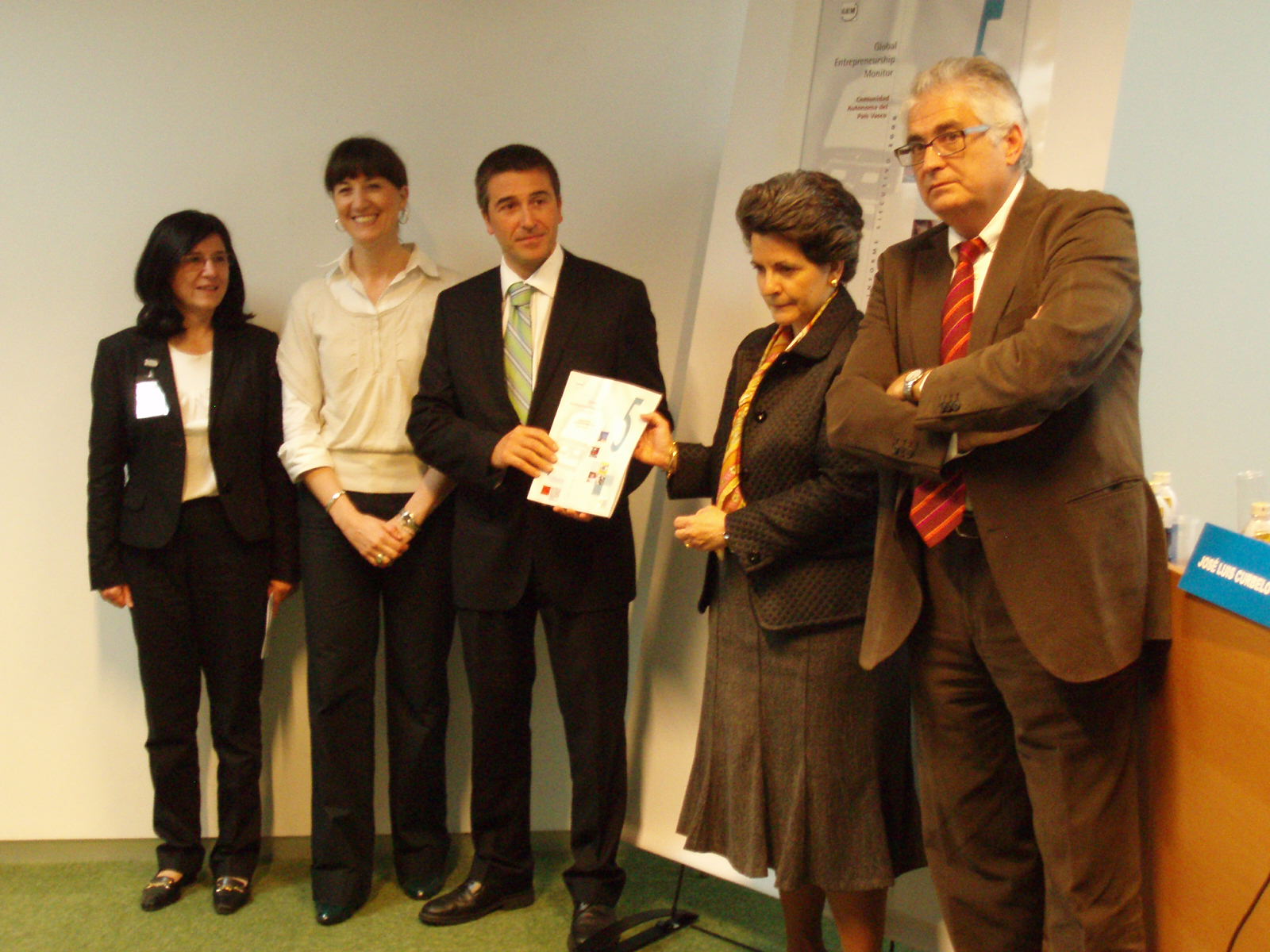 Se ha presentado el estudio "Global Entrepreneurship Monitor, GEM. Informe Ejecutivo. Comunidad Autónoma del País Vasco 2008", desarrollado conjuntamente por Eusko Ikaskuntza y Orkestra-Instituto Vasco de Competitividad. En la presentación que ha tenido lugar en la Biblioteca de la Diputación Foral de Bizkaia han intervenido Izaskun Artetxe, Diputada Foral de Innovación y Promoción Económica, DFB, Marta Ajuria, Vicepresidenta de Eusko Ikaskuntza por Bizkaia, José Luis Curbelo, Director General de Orkestra-Instituto Vasco de Competitividad, Iñaki Peña, director del equipo GEM CAPV y Alicia Coduras, directora técnica GEM España.