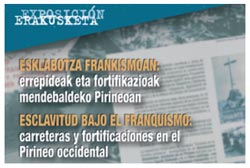 Udan Donostia eta irailean Nafarroako Orbaibar bisitatu ondoren, Esklabotza frankismoan: errepideak eta fortifikazioak Mendebaldeko Pirinioan erakusketak Bizkaira eta Araba bidaiatuko du Eusko Ikaskuntzaren eskutik. Izaera historikoaren jabe den eta lekukotasuna ematen duen erakusketa hau ondoko lekuetan ikusi ahal izango da: Amorebieta (azaroaren 2tik 15era), Mungia (azaroaren 16tik 30era), Barrundia (abenduaren 3tik 13era) eta Asparrena (urtarrilaren 11tik 24ra).