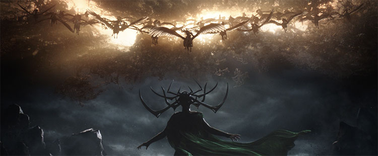[6] I had the opportunity to work on a Marvel production titled “Thor Ragnarok”, directed by Taika Waititi (2017). When I was hired, they told me that almost 100% of the shots would be filmed with chroma screens. And that’s how it was. Chromas are green or blue screens, with a specific shine and texture, used to separate the characters, who are in the foreground, from non-existent backgrounds or sets, which are typically created by computer. My lighting work focused on the main actors placed in a space surrounded by chromas that, in the final image, turned into large cities, endless hallways, vast areas where aircraft were parked, etc. During filming, however, the real elements in front of the camera were minimal. A couple of columns, a piece of the floor, a throne… The rest was virtual. While shooting, I always wondered what the image hidden behind the chroma would look like. I needed a reference. The production designer’s team provided me with wonderful descriptive drawings to give me an idea. Based on these, I was encouraged to design the lighting and contrast in the space where the actors were, trusting that the visual effects supervisor would maintain the continuity of my lighting in the space created behind the chromas.